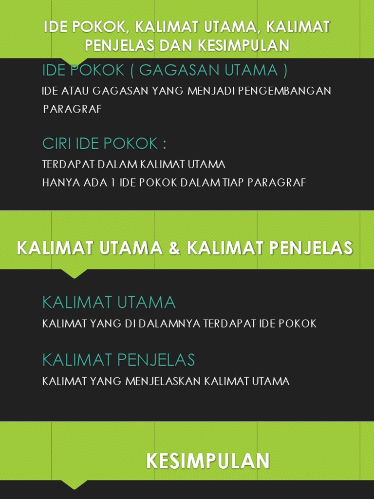 Baca bacaan dengan saksama dan pahami isinya. Kalimat utama adalah kalimat yang di dalamnya terdapat ide pokok paragraf. Letak kalimat utama dalam sebuah paragraf dapat berada di awal, tengah, atau pada sebagaian besar paragraf. Kunci utama dalam menentukan ide pokok suatu paragraf adalah membacanya secara cermat. Materi persiapan un bahasa indonesia quotmencari ide pokok kalimat utama dan kalimat penjelasquot. Bacalah sebuah wacana kemudian tutuplah wacana tersebut. Nah, kalimat utama ini berisi gagasan utama. Ide pokok ini terdapat dalam kalimat utama. Dalam satu paragraf hanya ada satu ide pokok. Kalimat utama juga sering disebut sebagai kalimat topik. Keberadaan kalimat utama pada suatu paragraf sangat penting karena menjadi kerangka dasar dalam pengembangan paragraf. Kalimat utama adalah kalimat yang di dalamnya terdapat ide pokok paragraf. Kalimat utama biasanya bersifat umum dan memuat keseluruhan isi dalam suatu paragraf.